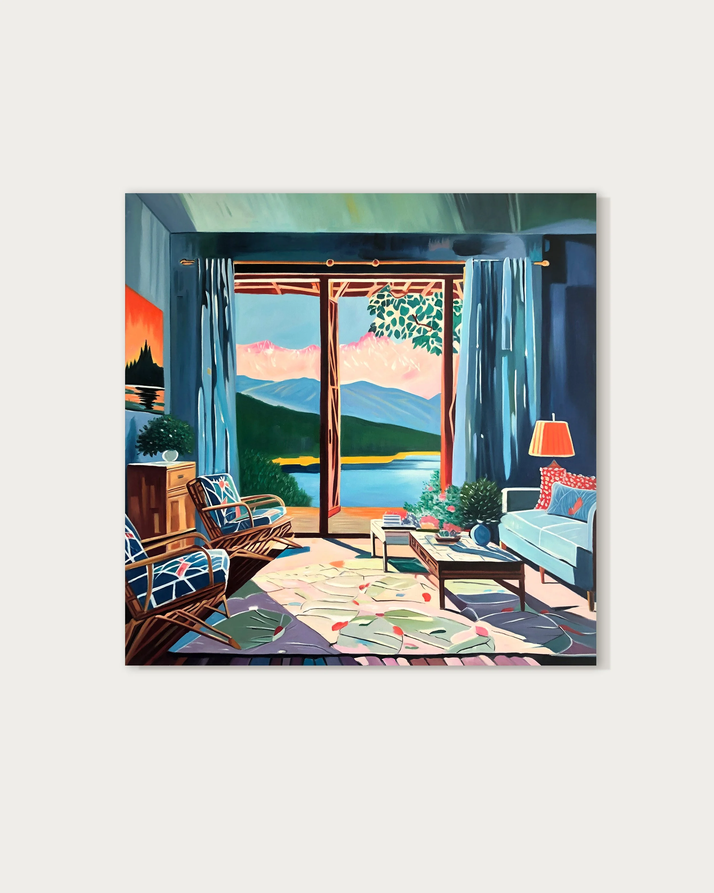 My work explores the quiet dialogue between interior spaces and the world beyond the window. The window becomes more than an architectural feature—it is a threshold, a frame within the frame, where intimacy and vastness meet.